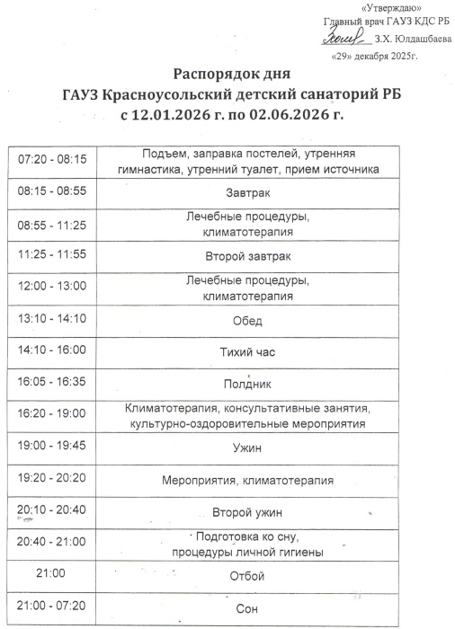 Распорядок дня в санатории с 12.01.2026 по 02.06.2026